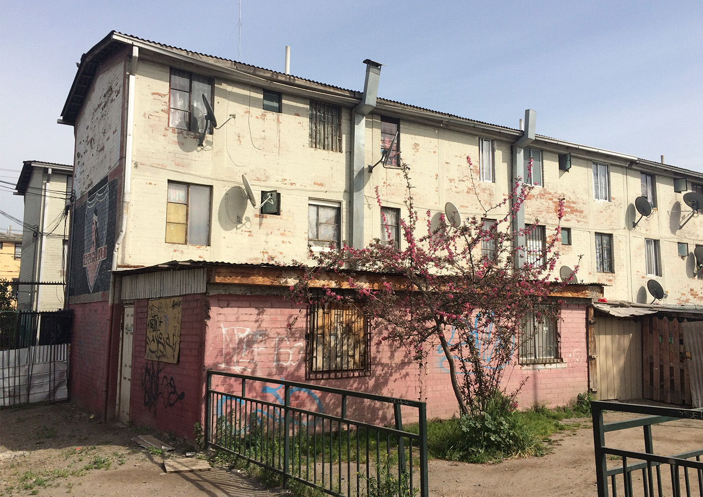 Ubicada entre las calles Ichuac, Curaco de Vélez y Queilén, la Villa El Caleuche Copropiedad I forma parte de un conjunto de viviendas sociales tipo Block construido en 1994. La copropiedad se compone de 4 bloques, con un total de 60 departamentos que cuentan con todos los servicios básicos (agua potable, alcantarillado y electricidad). Cada bloque tiene tres niveles, está construido en albañilería confinada, con techumbre de asbesto cemento y escaleras de acero.