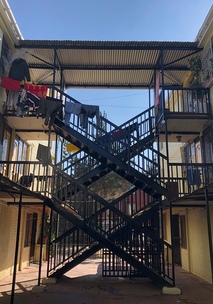 5. Caja de escalera: Se mejorarán las escaleras con nuevas barandas, pasamanos y peldaños de perfiles metálicos pintados con elementos antideslizantes. También se repararán las fundaciones de los pilares y se reemplazará la cubierta de la caja de escalera.