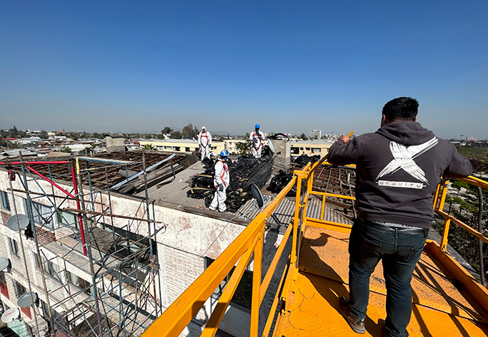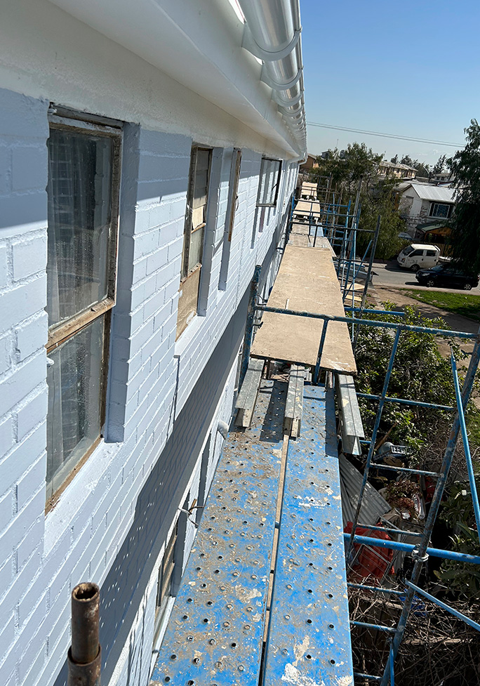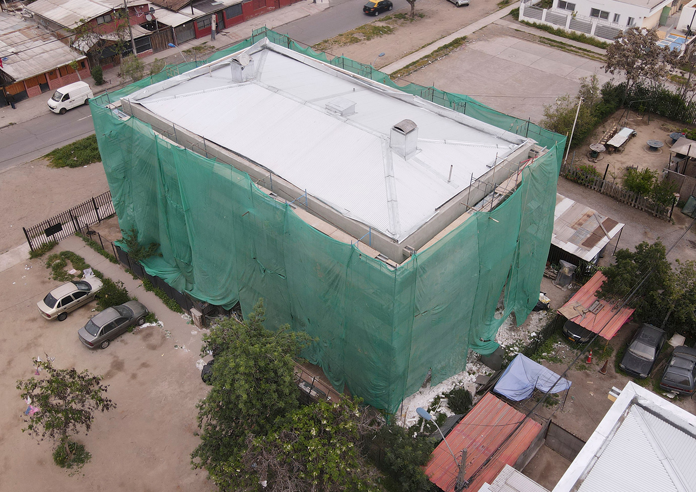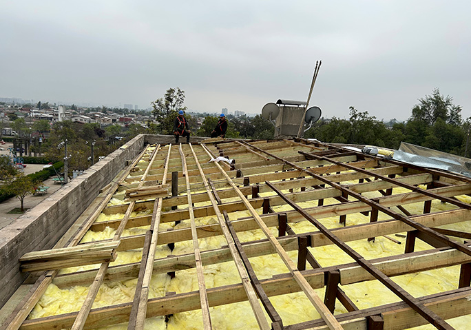 Para mejorar sus condiciones de habitabilidad y seguridad, se planearon una serie de obras: en primer lugar, se reemplazaron las techumbres de asbesto cemento por planchas de zinc nuevas, con costaneras renovadas y elementos aislantes añadidos para un mejor control térmico. También se cambiaron las canaletas y bajadas de aguas lluvias. Se abordó, además, la problemática de plagas de palomas, que afectaba principalmente techumbres y entretechos. En este sentido, se reemplaza la lana mineral, a fin de aspirar cualquier material relacionado con las plagas. Y se cambian los aleros por unos cerrados para evitar la entrada de palomas u otros agentes de plagas.