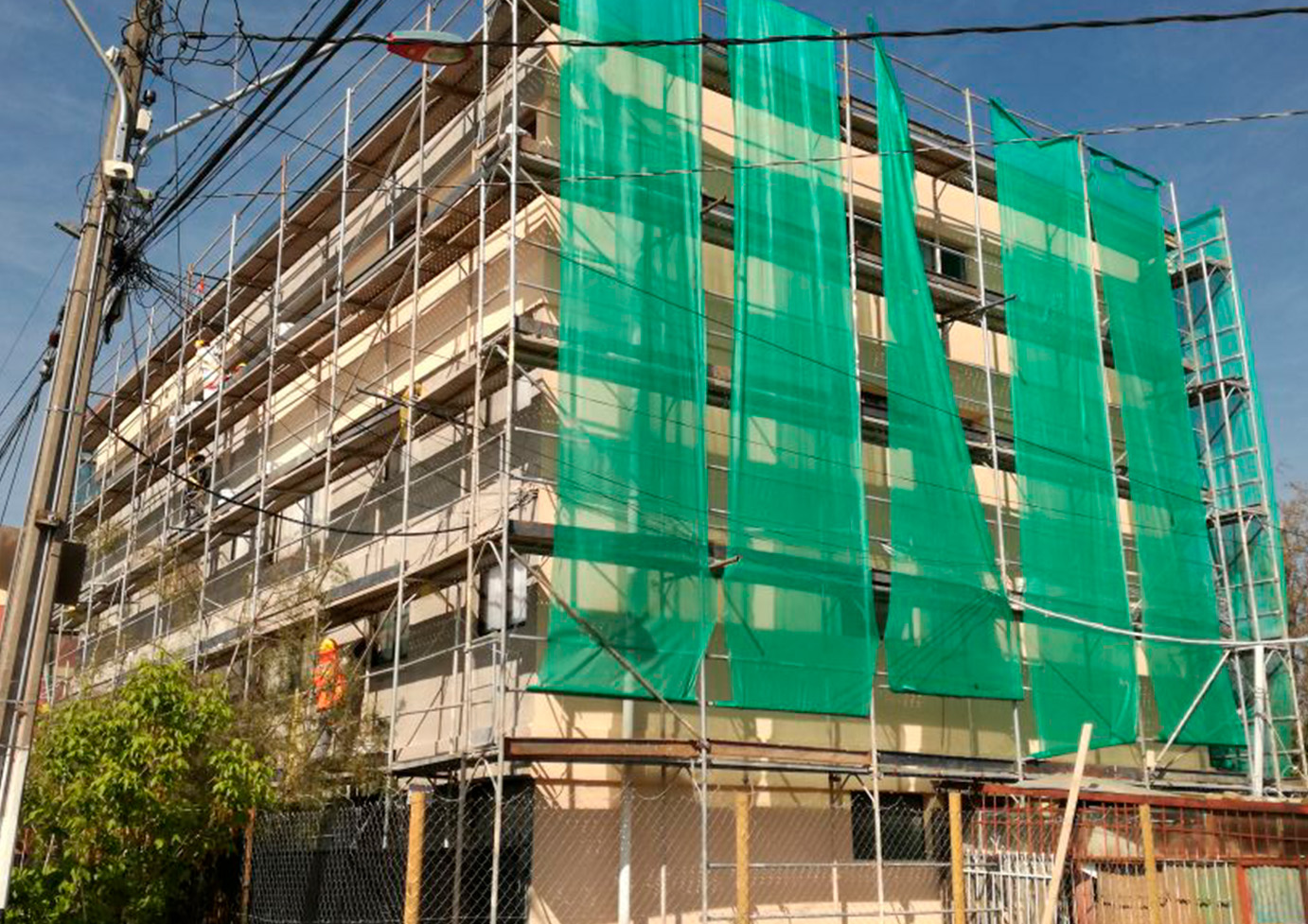 Todos los departamentos cuentan con servicios básicos. El proyecto incluye la implementación del sistema EIFS para mejorar la eficiencia energética, la instalación de paneles fotovoltaicos para iluminar las escaleras, y el recambio de puertas de acceso con numeración para mejorar la seguridad y la estética del conjunto.