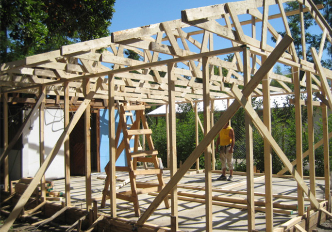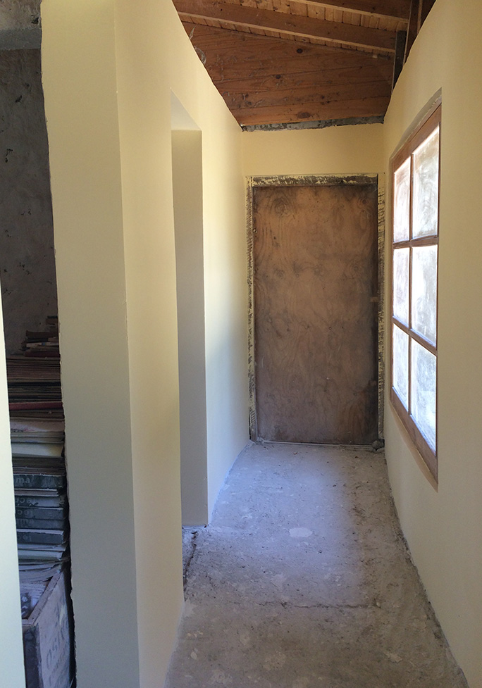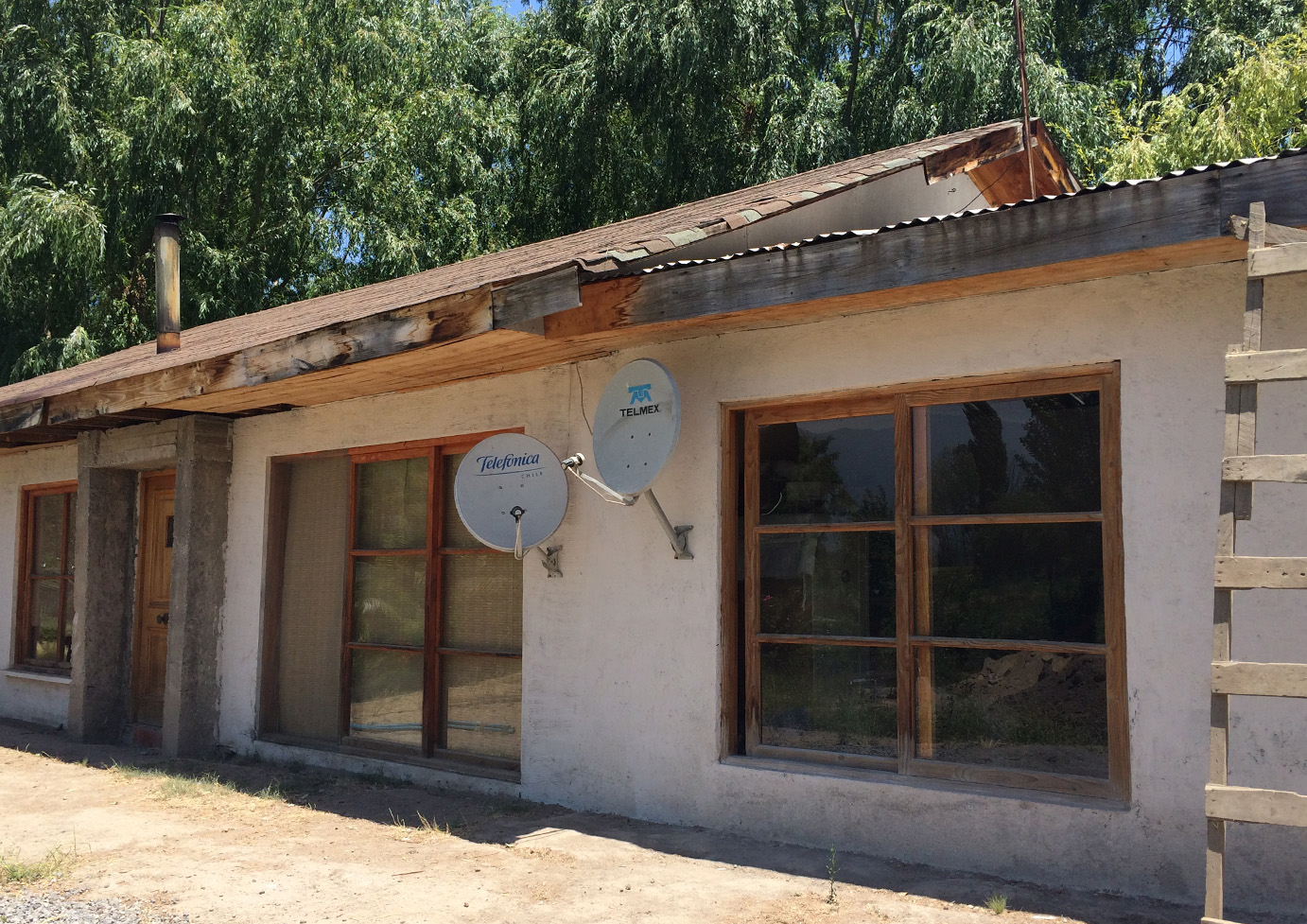 Las reparaciones incluyeron el reemplazo de techumbres, refuerzos de muros y reconstrucción estructural, en colaboración con la constructora local liderada por Rodrigo Blum y un equipo de maestros encabezado por Ismael Cornejo, reconocido más tarde como patrimonio vivo de la comuna. Incorporamos técnicas tradicionales e innovamos en el uso de materiales, como revoques con paja picada, resaltando la profunda conexión entre la arquitectura rural y sus habitantes a lo largo del tiempo.