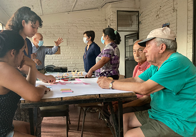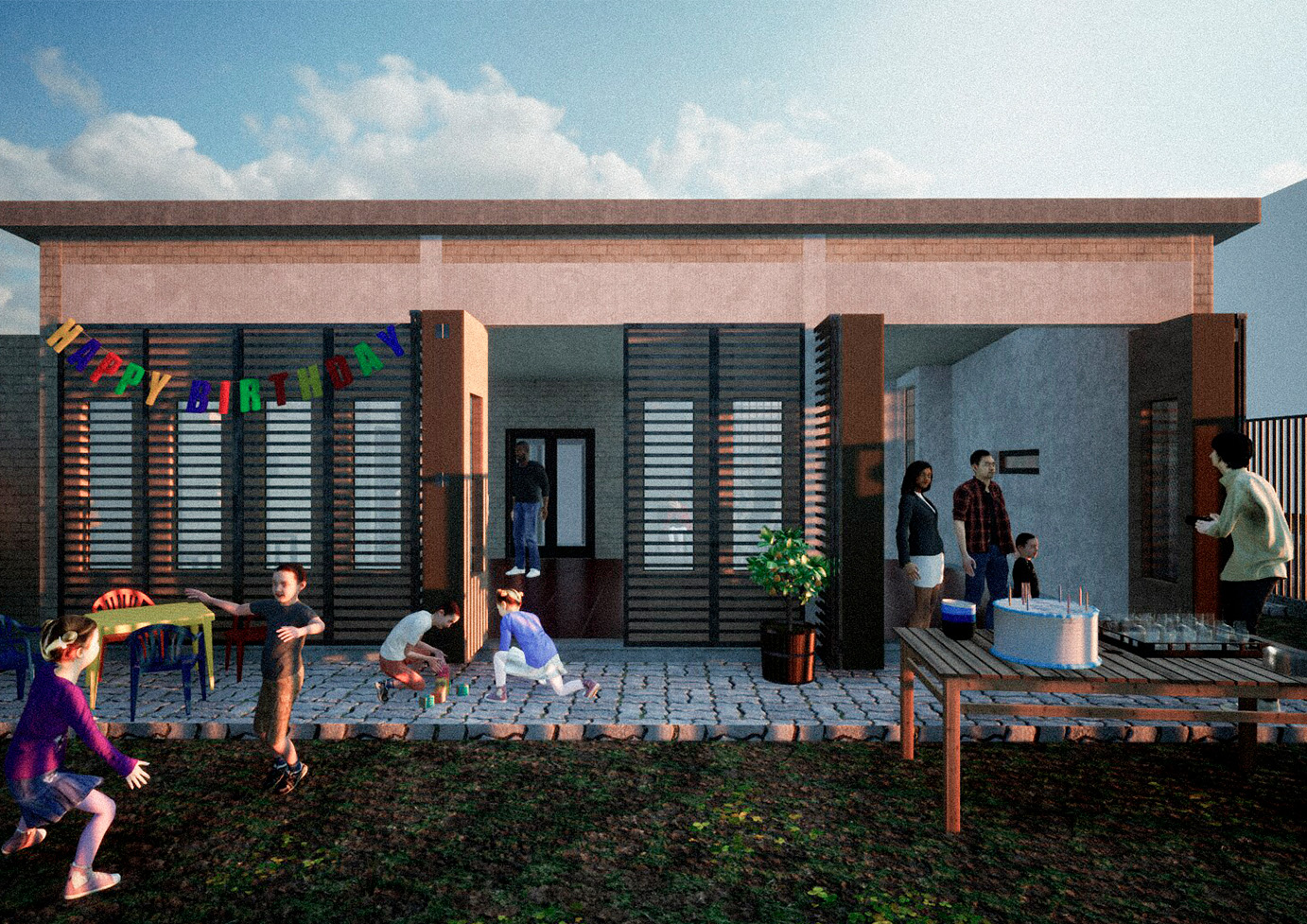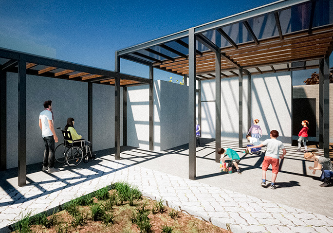 Además, conociendo el ímpetu de esta comunidad, preparamos la sede para futuras ampliaciones y generamos un diseño de pérgolas que conecten el edificio original remodelado, con el edificio del 2012 que cambiará su programa interno a aquellas actividades más silenciosas, como biblioteca y clases para niños.