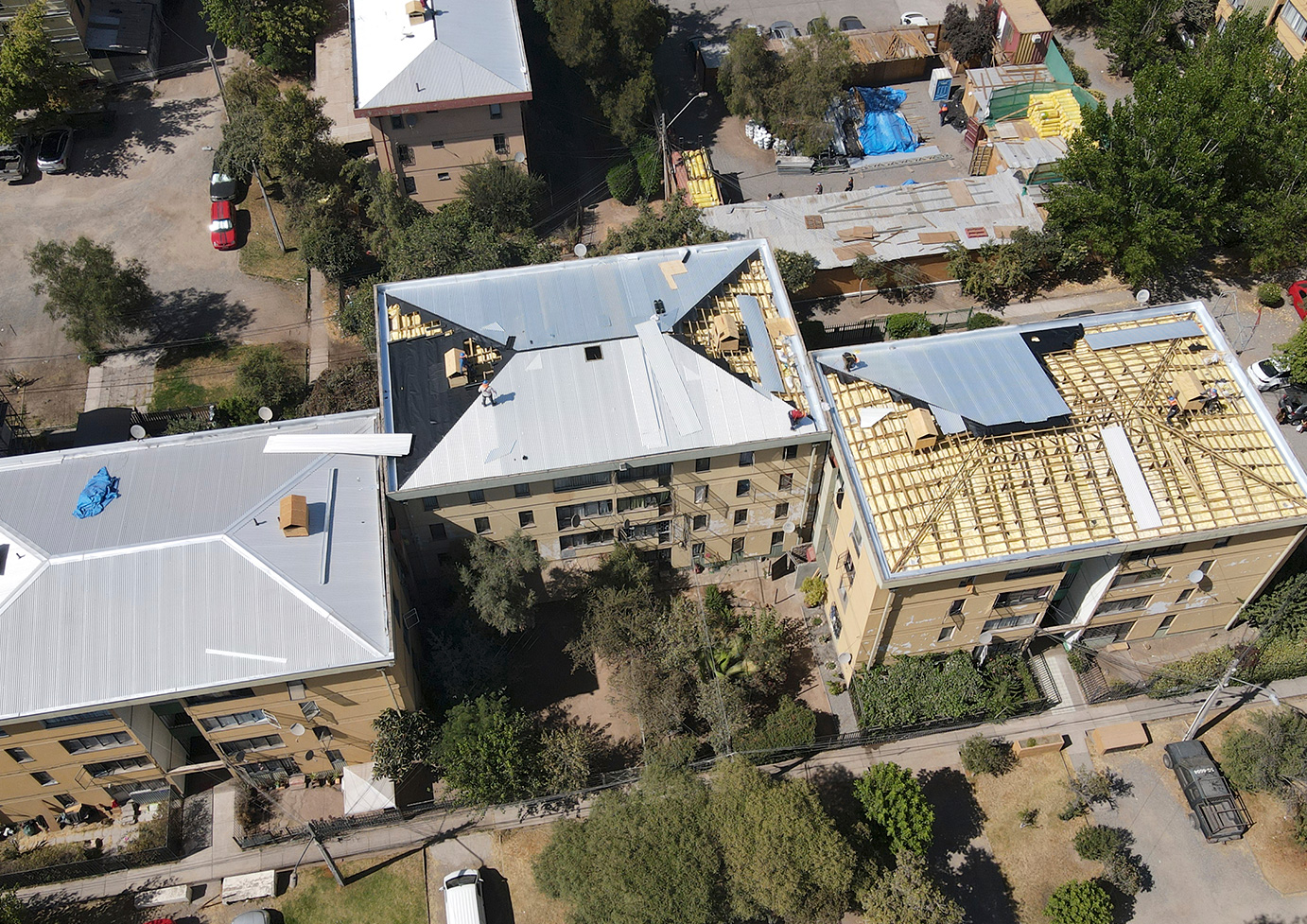 Esta última etapa constó del cambio de cubierta para los 33 blocks intervenidos, la reparación de fachadas en toda su extensión con acabado de pintura de gran calidad, el cambio de todas las puertas de acceso y el trabajo en escaleras para garantizar la seguridad de los y las vecinas. Se incluyeron también elementos críticos como el cambio de los remarcadores de agua y la reparación de las cabezas de las losas de hormigón de las cajas de escaleras.